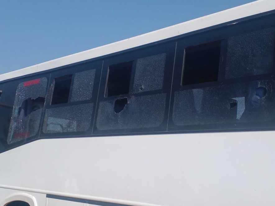 On their way towards the sports ground, the bus came under attack from stone-throwing individuals.
