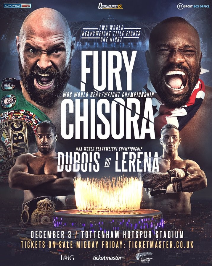 Chisora, who twice lost to Fury in the past, stepped up, and now the bout is confirmed to take place the Tottenham Hotspur Stadium in the UK.