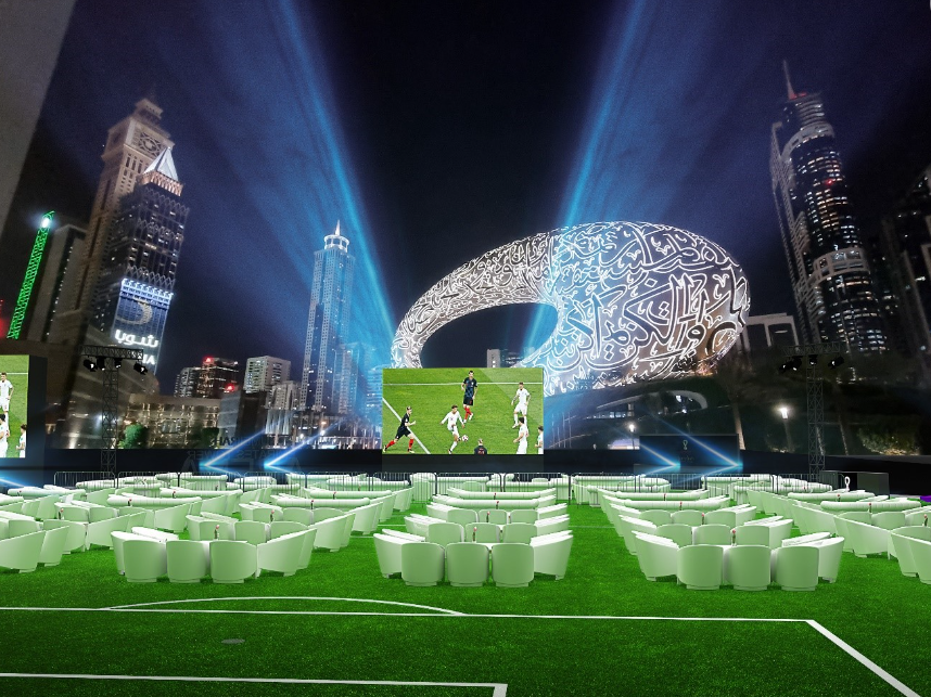 Set against a spectacular backdrop of the Museum of the Future, the outdoor Arena will host up to 500 people each night, combining state-of-the-art screens, private lounges with VIP sections and live performances for luxury-loving football fans.
