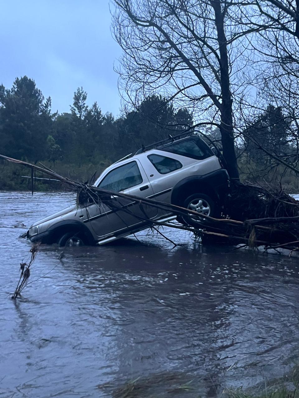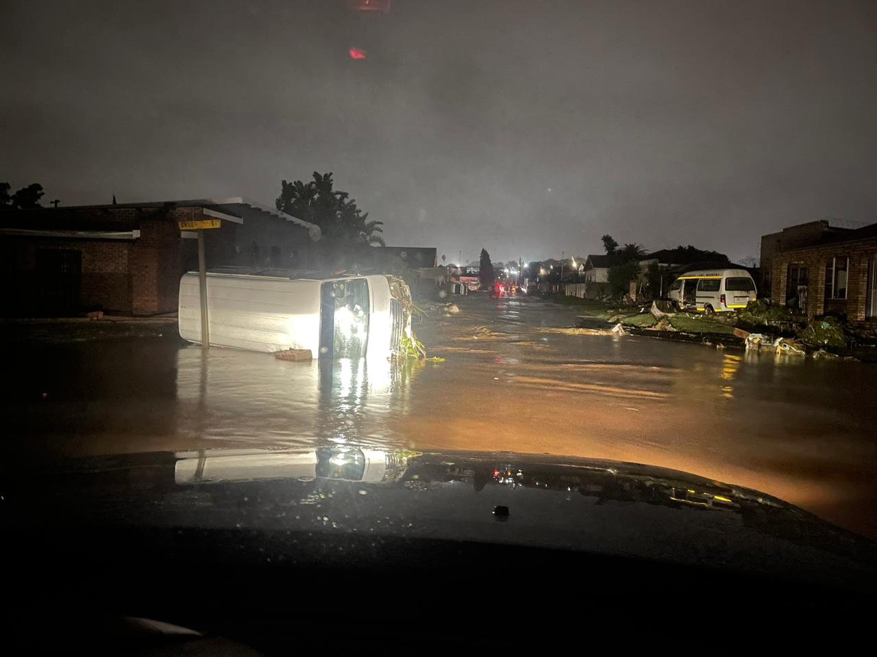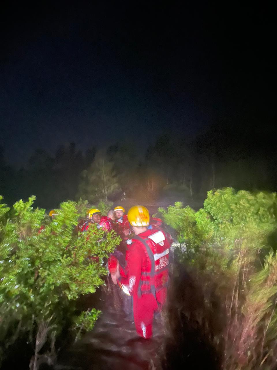 In one incident at around 03:00 a security officer alerted rescuers about a car trapped in the flooded Brak River, Rocklands. The six people in the partially submerged car tried to get to safety.