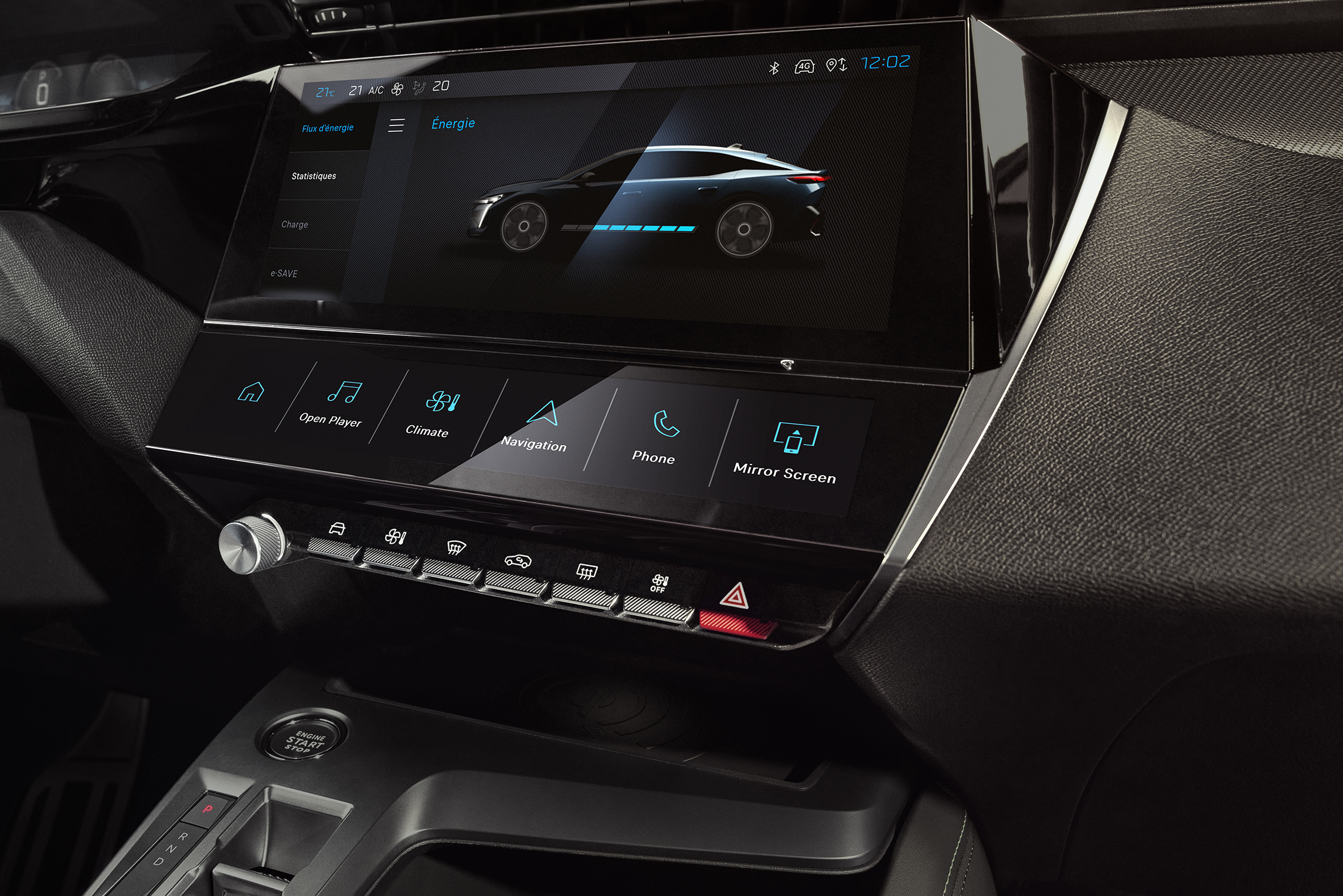 Each of the 5 customisable i-toggles offer a touch-sensitive shortcut to climate control settings, a phone contact, a radio station, an app launch… configured to the user’s choice.