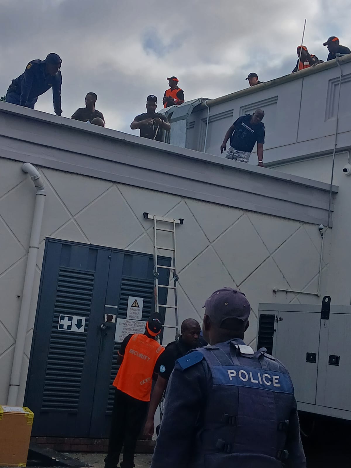 Mbombela – Onlookers at Riverside Mall in Mbombela, Mpumalanga, were left shocked when the body of a security guard was taken away and a wounded suspect was found hiding on the roof.