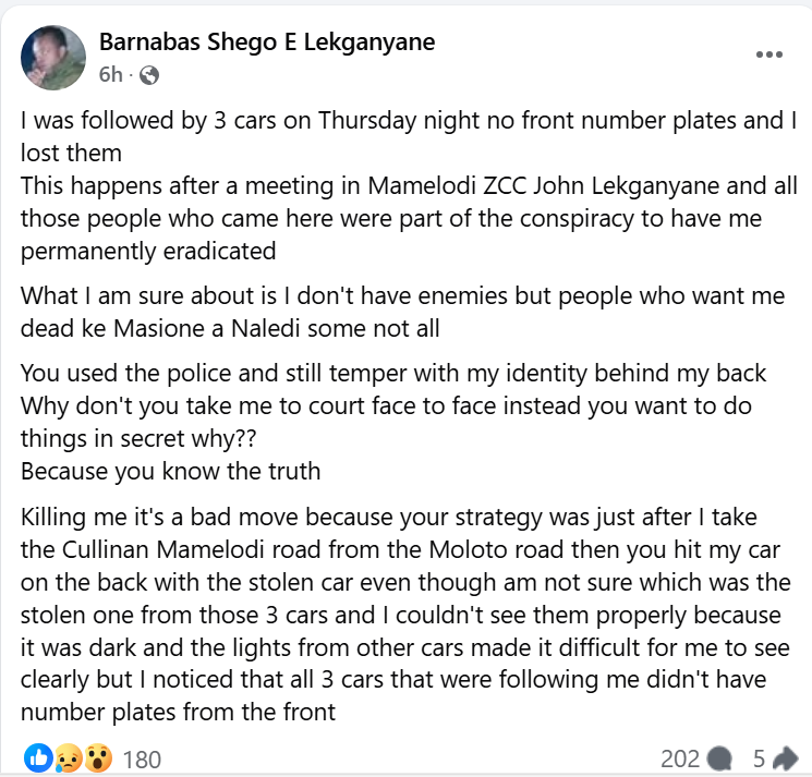 However, Serepo posted a distress message on Facebook under the name “Maditobane Barnabas Lekganyane”.